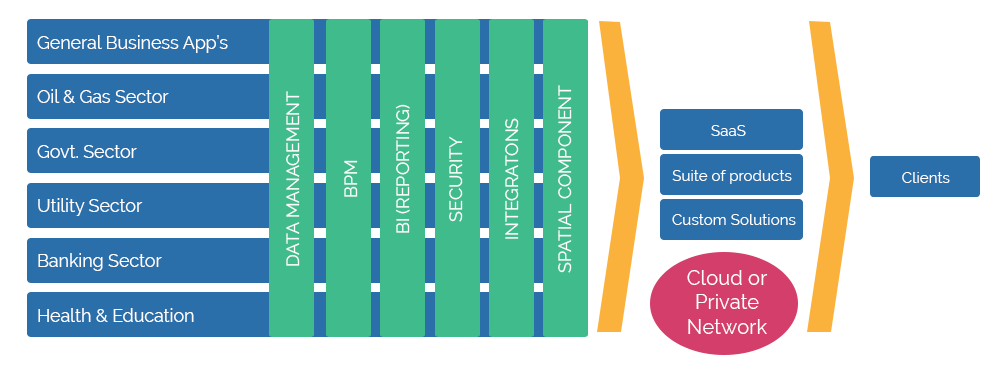 No matter it may be for a small utility company or it may be for a large oil and gas company, We deal with all the industries and meet the customer's unique business needs and deliver a complete SaaS custom business application to the clients. Whereas our solution is integrated with data management, BPM(Business Process Management), BI(reporting), security, integration and spatial component. Application can be deployed on cloud - public, private, hybrid - or on-premise