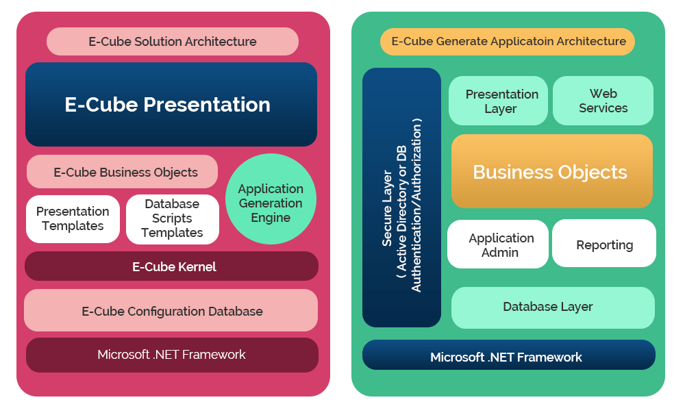 eCube solution builds feature-rich enterprise level business applications that are easy to customize and ready to deploy without any need for programming. The user needs to define business rules and configure the application by just one click, it will generate a complete application with .NET classes and database.